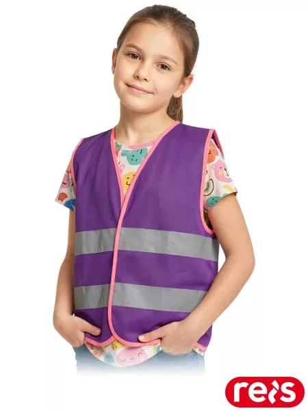Biztonság: a fényvisszaverő csíkok javítják a láthatóságot nappal, de főleg este vagy esőben/ködben, pontosan úgy, ahogyan azt a tanúsított gyermek Hi-Vis mellények előírják (EN 1150 / EN 17353 típus).