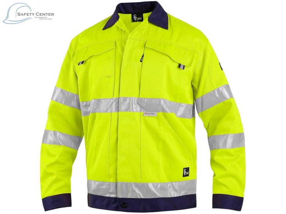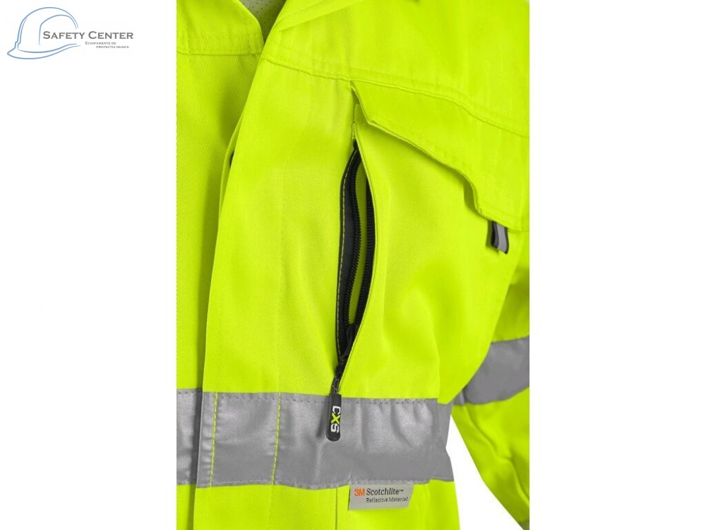 Geacă de lucru reflectorizantă cu mâneci finisate cu manșete. Dungi reflectorizante 3M.
