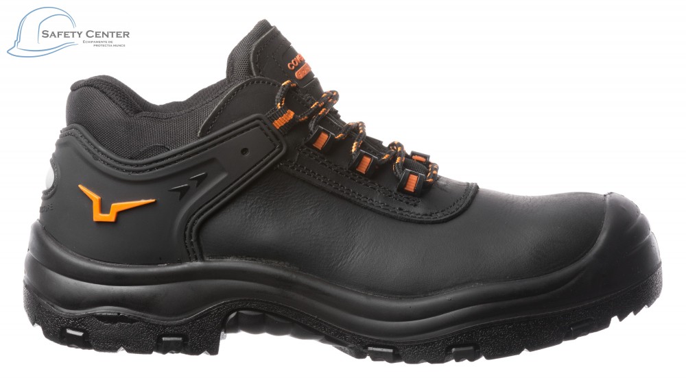 Pantofi joși de protecție, fără metal, din piele integrală hidrofugă, cu căptușeală interioară respirabilă și uscare rapidă. Protecție compozită pentru degete, talpă anti-puncție și rezistentă la ulei, cu absorbție a șocurilor. Certificat SRC anti-alunecare, ideali pentru condiții umede. Culoare: negru.
