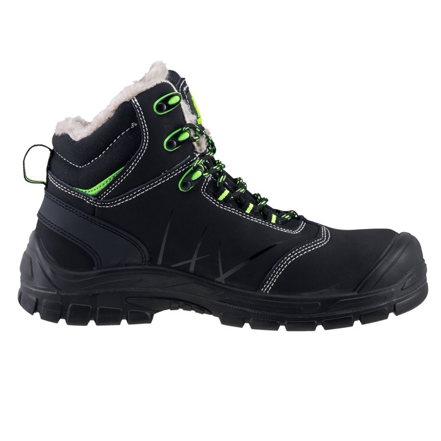 Cizme de protecție 138 S1 ZIMA, cu vârf metalic rezistent la impact, călcâi închis, proprietăți antielectrostatice și absorbție de energie în zona călcâiului. Partea superioară din piele moale de bovină. Talpă interioară din EVA și exterioară din cauciuc pentru aderență sporită.