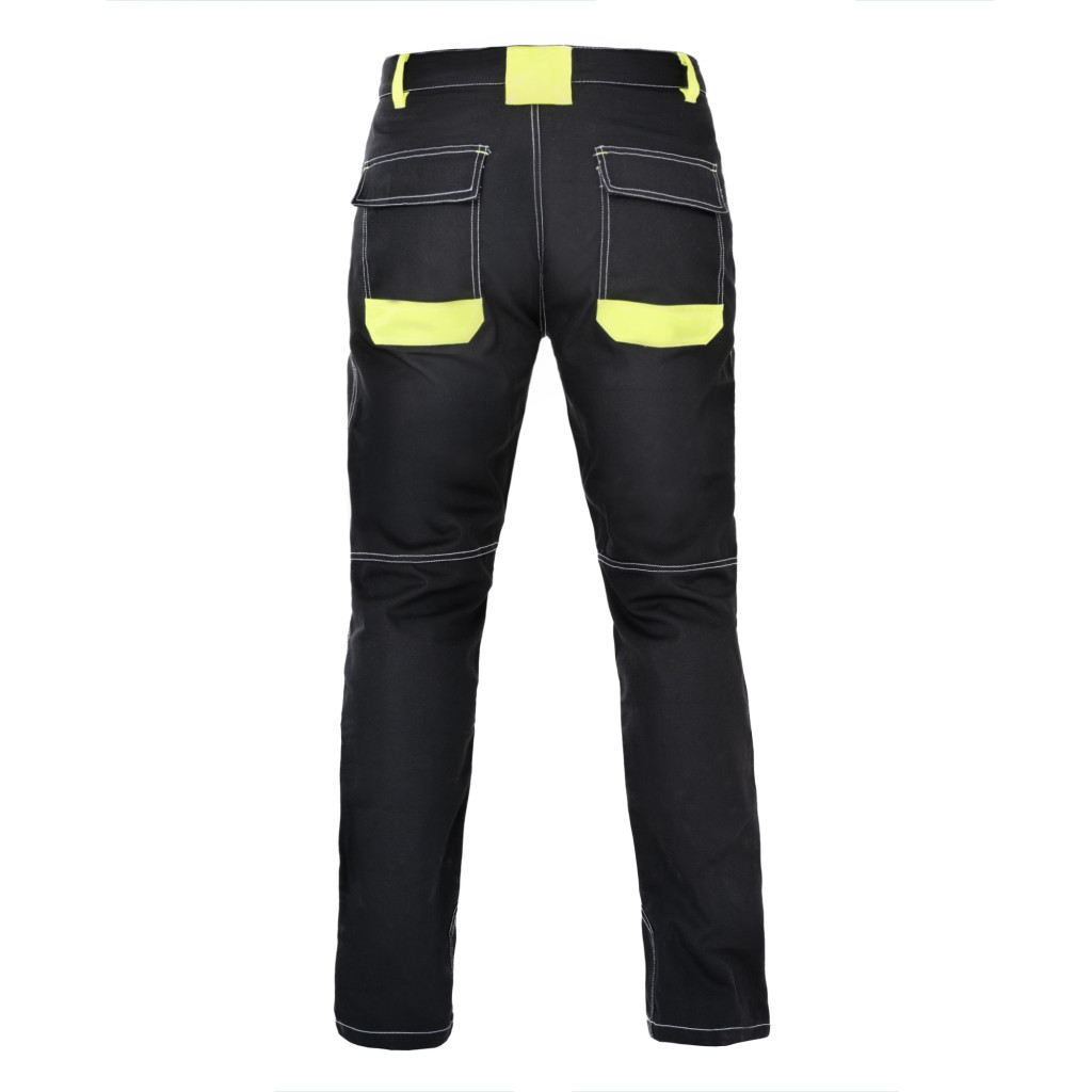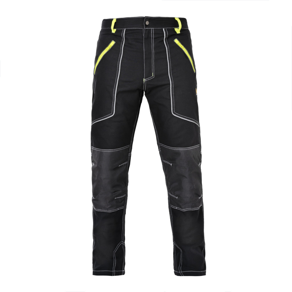 Pentru un plus de siguranță, pantalonii sunt dotați cu borduri reflectorizante pe partea din față, sporind vizibilitatea în condiții de iluminare redusă. Opțiunea de a folosi genunchiere îi face ideali pentru activități care implică lucrul prelungit în poziții dificile sau la sol.