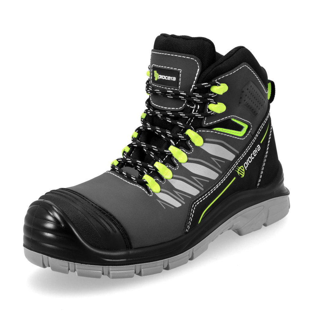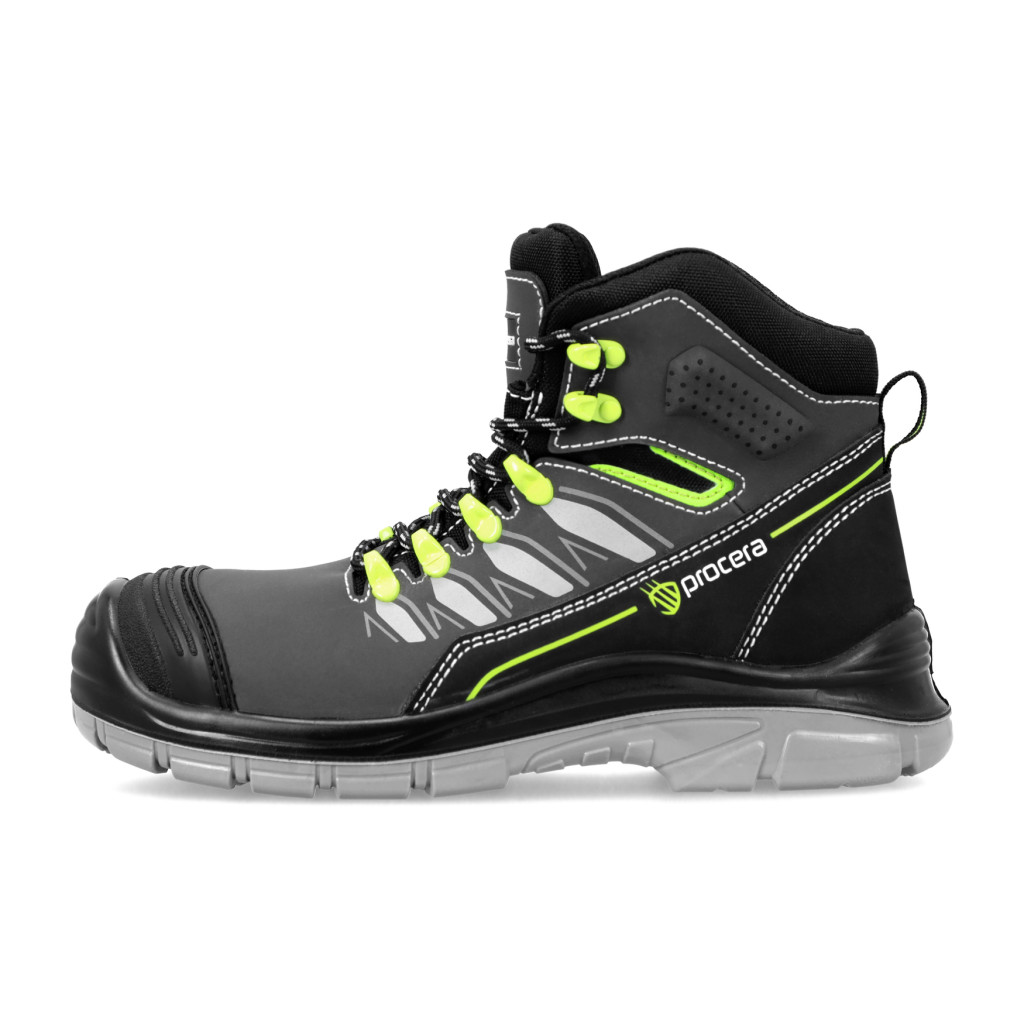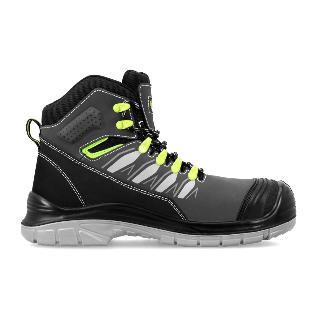 Bocancii de protecție LENNOX, clasa S3, au partea superioară înaltă din piele nubuc, material textil Oxford și TPU. Interiorul este realizat din plasă respirabilă. Bocancii dispun de bombeu din oțel ce protejează de impacturi până la 200 J și comprimare până la 15 kN, precum și de branț din oțel antiperforație pentru protecția împotriva obiectelor ascuțite. Talpa antiderapantă, realizată din două materiale, este rezistentă la uleiuri, benzină și alți solvenți. Încălțămintea are proprietăți antistatice, absoarbe energia în zona călcâiului, reducând solicitarea articulațiilor, iar partea superioară impermeabilă previne pătrunderea apei. Produsul respectă standardul EN ISO 20345. Disponibil în mărimi 39-47. Ambalare: 1/10 cutie.