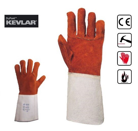 • manusi de sudura cu grosime din piele spalt de bovina de 1,2 mm tratata cu material ignifug, rezistenta la caldura si flacara deschisa