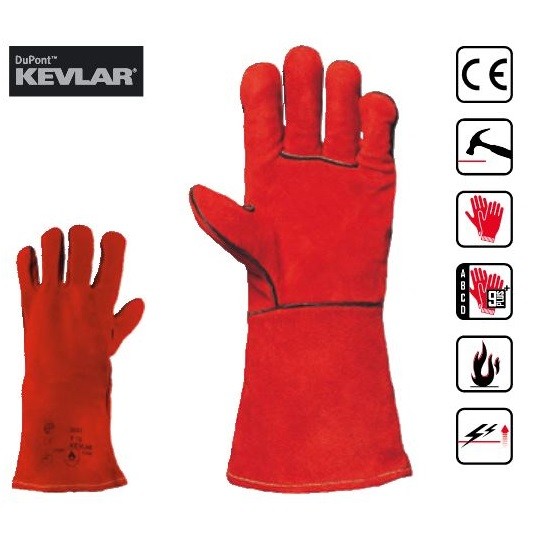 • piele spalt bovina anti-scantei de culoare rosie cu proprietati antistatice, rezistenta la flacara, cu fibre Kevlar®