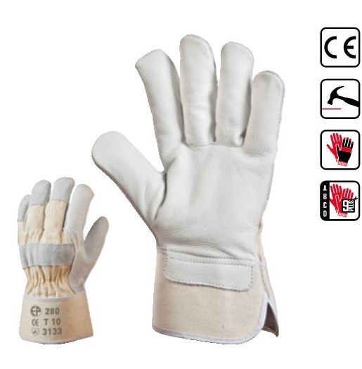 • palma din piele integrala de bovina, moale, gri, cu grosime de 1,1 mm pentru uz intens