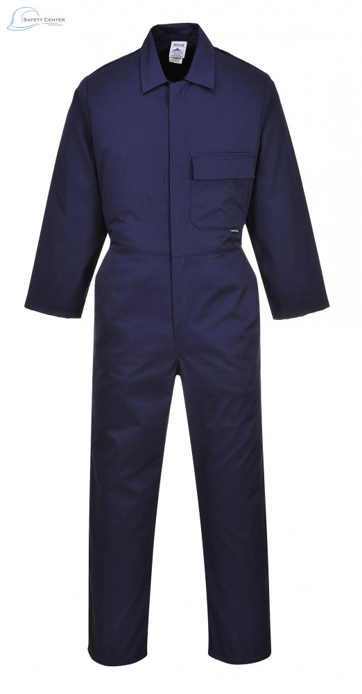 Acest combinezon elegant are un buzunar cu clapeta aplicat pe piept si doua buzunare laterale.