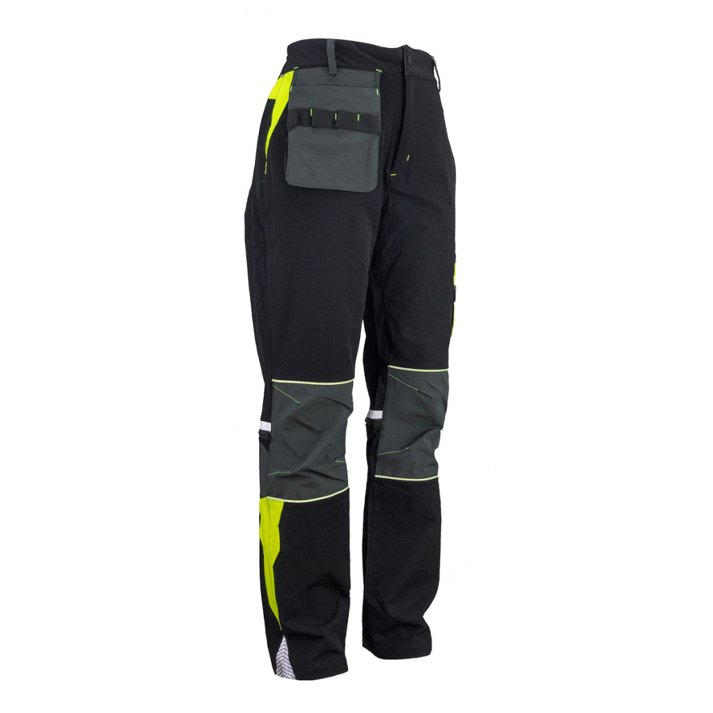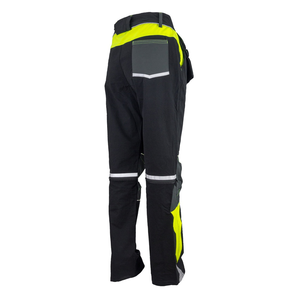 Întăriturile din țesătură Oxford la genunchi absorb presiunea, iar elementele reflectorizante de pe picioare și talie te fac vizibil în orice mediu de lucru cu lumină redusă.