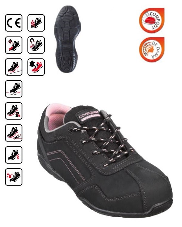 Pantofii de protecție pentru femei sunt creați din nubuc negru de înaltă calitate, oferind o combinație ideală între stil, confort și siguranță. Cu bombeul din material compozit (CK), aceștia protejează eficient fără a adăuga greutate suplimentară. Talpa flexibilă din PU/nitril oferă o rezistență superioară la contactul cu suprafețe de până la 300°C și este antistatică și rezistentă la uleiuri. În plus, talpa dublu stratificată și energia absorbantă a călcâiului asigură stabilitate și protecție optimă împotriva alunecărilor, testată pe suprafețe umede din ceramică (SRA).