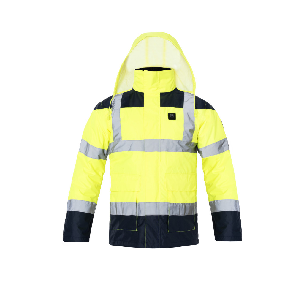 Jachetă izolată, cu căptușeală din poliester și strat exterior impermeabil, dotată cu fermoar bidirecțional și bandă Velcro. Are 5 zone de încălzire alimentate de powerbank (neinclus). Glugă ascunsă, guler căptușit și buzunare multiple. Mărimi: S-XXL. Stoc limitat!